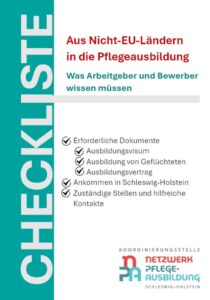 Infothek > Rahmenbedingungen > Azubis aus Drittstaaten Facebook Twitter WhatsApp E-Mail Aus Nicht-EU-Ländern in die PflegeausbildungCheckliste für Ausbildungsinteressierte aus Drittstaaten und ArbeitgeberCheckliste Drittstaaten AzubisHerunterladen nächster Artikel vorheriger Artikel